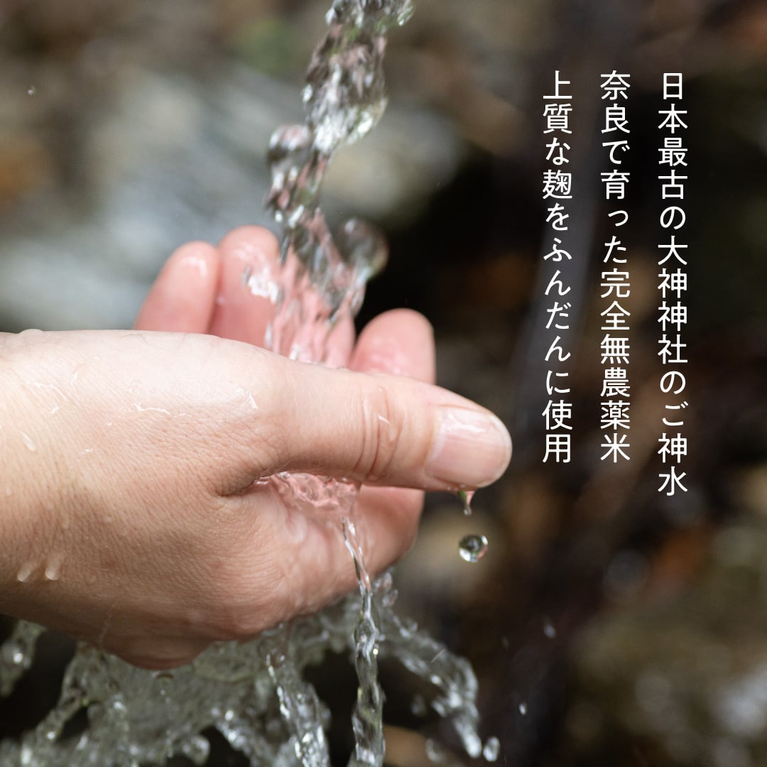 発酵発祥の地 奈良に所在する日本最古の大神神社のご神水、奈良で育った完全無農薬米、上質な麹をふんだんに使っております。