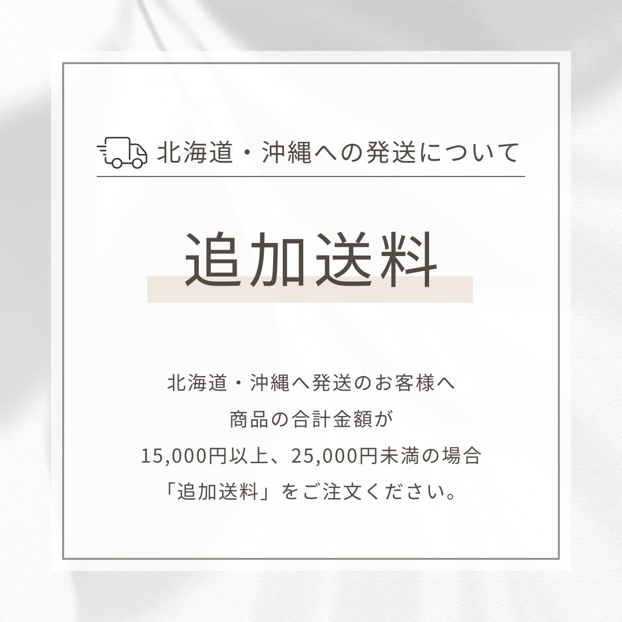 北海道・沖縄へ発送のお客様は商品の合計金額が15,000円以上、25,000円未満の場合「追加送料」をカートに入れてください。